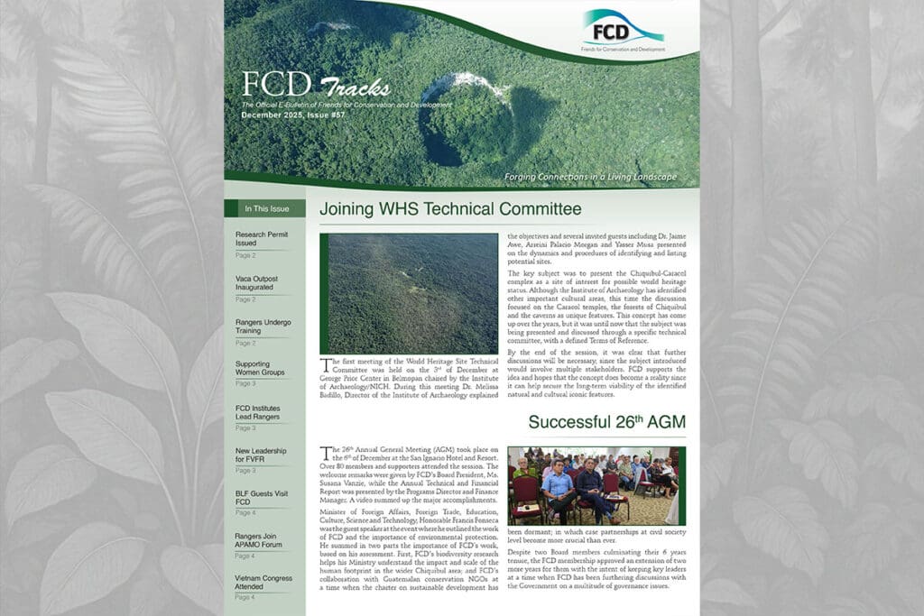 We’re excited to share FCD Tracks Issue #57 — our December 2025 newsletter! In this edition, discover key achievements in conservation governance, ranger capacity building, research continuity, and community empowerment across the Chiquibul–Maya Mountains landscape. From national and international collaborations to on-the-ground protection and sustainable livelihoods, Issue #57 highlights how FCD continues to forge strong […]